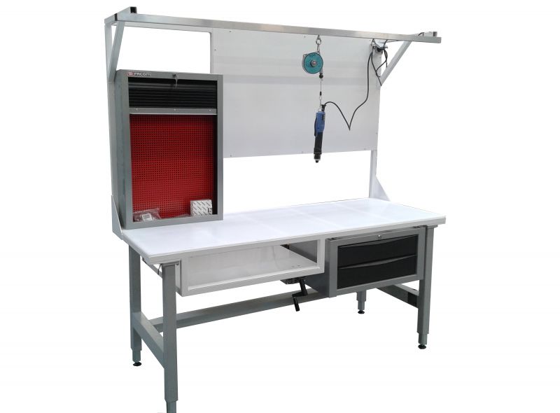 Nous étudions des postes de travail ergonomiques sur mesure. Ils peuvent être réglable en hauteur électriquement ou hydrauliquement. Nous pouvons intégrer des outillages de vissage, d'assemblage ou de mesure ainsi que des zones de rangement et des éclairages.