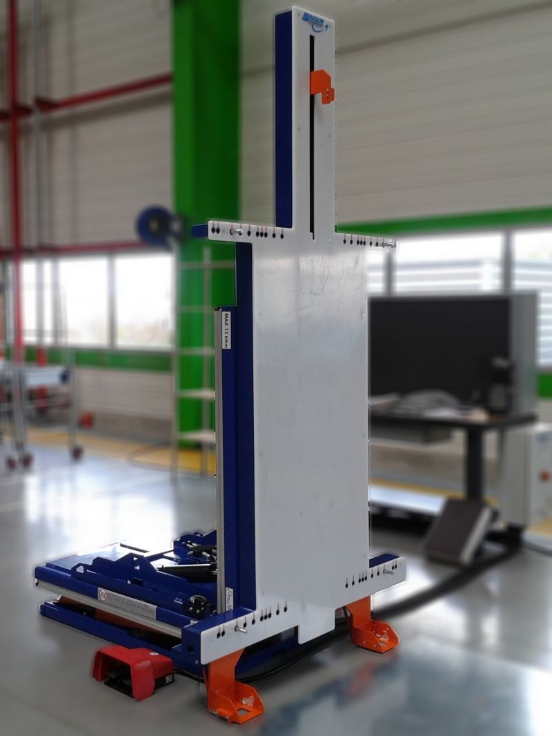 Ce poste de travail a été conçu et réalisé pour que notre client puisse assembler de façon ergonomique des ossatures d'armoires életriques. Il permet également de basculer ces armoires à la vertical en fin d'assemblage.