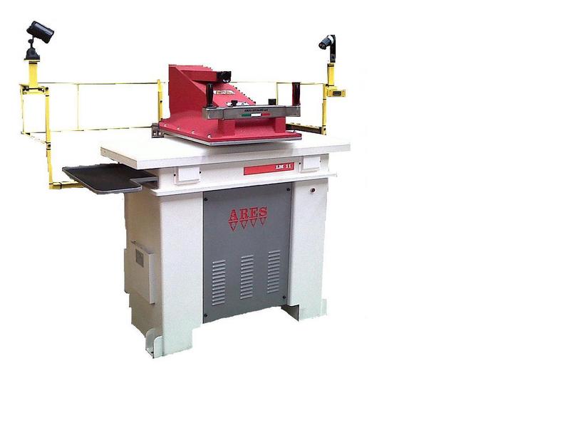 Presse de coupe à bras tournant - avec assistance motorisé de la rotation du bras - pression de coupe 27 T - avec fin de course automatique par préssostat permettant d'utiliser des emportes pièces de différentes hauteurs sans changer de réglage - souflet de protection colonne anti-tâches - déclenchement par commande bi-manuelle - système inovant pour réduire le bruit sonore